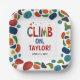Get ready to elevate your climbing-themed birthday party with our vibrant paper plates! Featuring colourful, abstract geometric climbing rocks on a crisp white backdrop, this design is perfect for any indoor or outdoor celebration. Bold green, red, and black sporty fonts highlight the fun phrase "Climb On, [Name]!" with the word "Climb" playfully painted in a charming style. The date is included and the text is fully customisable to make your event one-of-a-kind. These plates are sure to add a fun touch to your climbing birthday party! Personalise them today, and be sure to check out our other climbing-themed products to complete your party setup!