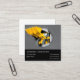 This cool construction business card template is presented on our square business card stock and designed with a the coolest graphic of a piece of construction equipment bursting out of a metal background and simple text layout you can customise online.