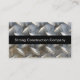 Construction or building contractor business card template including an industrial metal plate background and text along with text layout you can customise online. Designed for a construction company, builder, building contractor.