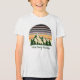 Customise your own family road trip tri-blend kids t-shirts to embark on a journey through nature this summer or fall. Personalise with your last name underneath the green forest of trees and dark mountain sunset for a cool vacation keepsake for your outdoor group.