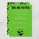 Personalise invite Cute Halloween flock of black bats PLdesign. You can customise Halloween party invitation green background colour and black and white text.