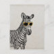 Cool cute funny zebra sketch with trendy glasses postcard