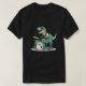 This T-shirt features a cool cartoon design showcasing the legendary T-Rex playing a full drum kit with pure enthusiasm. Dressed in sunglasses, a white shirt, a black vest, and a tie, this dinosaur captures the essence of a sleek and professional jazz musician. The word "JAZZ" is boldly displayed on the turquoise bass drum, highlighting his favorite genre.This unique design is perfect for music lovers, dinosaur enthusiasts, and anyone who appreciates a mix of humor and distinct style. It makes an excellent gift for musicians, drummers, or anyone wanting to express their love for jazz and prehistoric creatures simultaneously. Let the dino-rhythm begin!