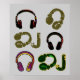 A cool item with the image of six graphic colour headphones on a customisable grey background colour... Contemporary music-themed ideas for decorating walls