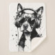 Cool Dog headphones Cute Pets Black and white ink Sherpa Blanket