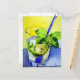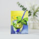 A cool glass of lemonade - great contrast in the yellow of the background and the lemon slices, the bright green of the mint leaves and the blue of the tray and the spoon. Original watercolour