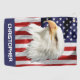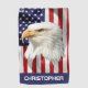 Cool head of a bald eagle over the American flag. A patriotic golf towel for anyone. Customisable template name at the bottom. You can change or delete the name. You can transfer this design to a number of other towels. If you need to change the font, font colour, the colour of the background; if you need to adjust the image to the printable area, please, use the "Edit Design" button or "Click to customise further" under the "Details" link. This beautiful towel can be found in the "Sports" collection or in the "Sports, Toys & Games"-->"Sports & Outdoor"-->"Sports Equipment"-->"Golf"-->"Golf Towels" department. A choice of 16 eagles on sixteen golf towels. Buy one, have fun, and be happy.
