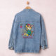 Beautiful Graphic with Happy Easter message on Denim Jacket featuring a cool Easter bunny holding a chicken with flowers and a tree branch around him. This design was hand-painted and is a unique illustration. You will find many coordinating items in the same collection and many more bunny cards in another Easter collection. The best to view the store is through the collections. Happy Easter!