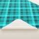 A large sized sherpa blanket featuring an elegant plaid pattern design in cool, calming turquoise.