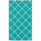 A 60” x 104” tablecloth featuring an elegant plaid pattern design in cool, calming turquoise.
