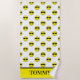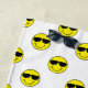 A pattern of cool yellow emoji faces with sunglasses covers this towel. A yellow band on the lower edge has a name in black text for you to personalise. Perfect for the beach or poolside!