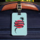 Cool dragon luggage tag with a digital illustration of a monster - chimera between a dragon and a snake with spikes all over its body curled around a red ball.