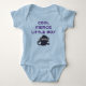 A trendy one-piece for a brave newborn baby boy with the custom words "Cool Fierce Little Boy" (© Mira) in a modern, stylish font, and a funny, cute cartoon ninja monkey baby. I designed it specifically for a little fighter who struggled after birth with some health condition. The romper is now blue, but you can choose a different colour or white.