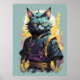 Cool Fire Splash Grey Ninja Cat Warrior Poster