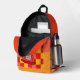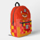 A cool backpack featuring a firefighter (fire) like pattern, a fire hat and a fox with a fire hat. The fox from the book "Firefighter Fox".