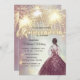 Modern firework gold sparkle girl in a ball dress invitation design.