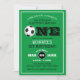 Hitting the big one! A birthday invitation for your little champ who is turning one, with a football/soccer theme, featuring a green background, white and black text, a football, and a modern 1st birthday party template that is easy to customise.