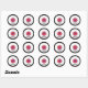 A fun sticker featuring a white frisbee with blue and red designs. The saying 'frisbee' can be changed or removed.