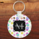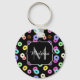 Cool fun colorful donuts pattern black Monogram Key Ring