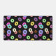 Cool and fun colourful doughnuts pattern. Pattern made from illustrations of many delicious pastry doughnuts with all kinds of coloured glazing, chocolate, vanilla and all the colours, blue, yellow, pink, purple, cyan..