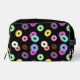 Cool and fun colourful doughnuts pattern black bag Accessories . Pattern made from illustrations of many delicious pastry doughnuts with all kinds of coloured glazing, chocolate, vanilla and all the colours, blue, yellow, pink, purple, cyan..