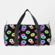 Cool fun colourful doughnuts pattern black duffle bag
