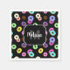Cool fun colourful doughnuts pattern black Monogra Napkin