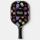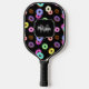 Cool fun colourful doughnuts pattern black Monogra Pickleball Paddle