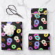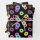 Cool fun colourful doughnuts pattern black wrapping paper sheet