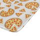 Cool and fun pizza slices pattern on white for birthday pizza party. Juicy vector made pizza with crunchy crust, cheese, salami, champignon mushrooms, olives and a sprinkle of oregano.