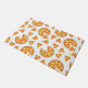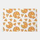 Cool and fun pizza slices pattern on white for birthday pizza party. Juicy vector made pizza with crunchy crust, cheese, salami, champignon mushrooms, olives and a sprinkle of oregano.