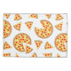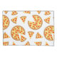 Cool and fun pizza slices pattern on white for birthday pizza party. Juicy vector made pizza with crunchy crust, cheese, salami, champignon mushrooms, olives and a sprinkle of oregano.
