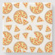 Cool and fun pizza slices pattern on white for birthday pizza party. Juicy vector made pizza with crunchy crust, cheese, salami, champignon mushrooms, olives and a sprinkle of oregano.