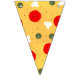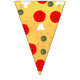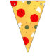 Pizza party Party Supplies indoor or outdoor Décor Banners Bunting Flags to celebrate kids birthday. Juicy vector made pizza with crunchy crust, cheese, salami, champignon mushrooms, olives and a sprinkle of oregano.