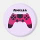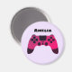 Personalised gamer magnet with original art of a red console gaming controller and customisable name. Great for your geeky friend or significant other who loves to play video games.