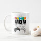 Mum's like gaming too! Check out this trendy gamer coffee for Gamer Moms! Featuring the titel 'I'm a GAMER MOM, like a normal mum, only much cooler!', and two gaming controllers.