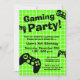 Cool gaming Birthday party invitation template. Custom invites for Birthday parties and other fun occasions. Personalizable announcement text, age number and background colour. Birthday invite template for kids and adults. Make them for son, grandson, granddaughter, daughter, friends etc. Video game controller illustration with neon green pixel matrix background. Background colour customisable. Fun for children and adults. Download the digital option if you are pressed for time.