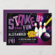 Cool Girly Bowling Strike Colourful Purple Party Invitation