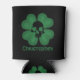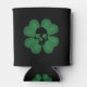 A can cooler in black with a spooky goth style shamrock on the front, back, and bottom. Personalise with a name. Great for St. Patrick's Day celebrating.