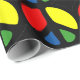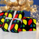 Groovy peace sign, red blue green yellow on black background. Customise with your own text, resize the image. Vintage cute girly colourful artistic trippy hippie sixties pattern.