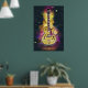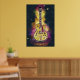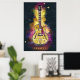 Cool Grunge Guitar Art Personalised Poster featuring your name and our funky guitar design painted in hot yellows, pinks, and purples in grungy abstract brush strokes.