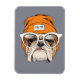 This design features a bulldog portrait in a hipster hat and with glasses.