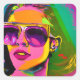 Cool Hipster in Sunglasses Unique Modern Art Square Sticker