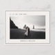Personalised simple Stylish Modern Cool ivory Photo Wedding Save the Date Horizontal Invitation Postcards featuring elegant and minimalist sans-serif font, custom photo, couple names, sender's address, wedding date and location, website link for invitation to follow, fully customisable background and a bold, cool graphic black border (optional). Custom your wedding invitation choosing different image backgrounds on front and back, or leave this classic and clean white colour. You can choose a solid custom background colour too. A simple and cool template fully customisable perfect for your wedding invitations, engagement announcement, bridal shower, thank you cards and more. Create your own sophisticated card for any unique celebration.