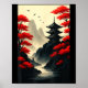 Cool Japanese Pagoda Castle Mountain Landscape Graphic Art