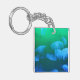 Atmospheric photograph of transparent jellyfish swimming in a blue / green sea.