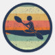 A cool kayaking gift for a kayaker featuring a person in a kayak or canoe on the lake in front of a beautiful sunset.
