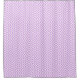 Add a cool accent to your bathroom with a custom shower curtain featuring a bold lavender and white geometric pattern of lavender meanders angling around white diamonds containing light purple diamonds. White zigzags separate the winding pale purple paths and offset diamonds.