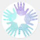 Cool Light and dark blues hands circles and a star Classic Round Sticker