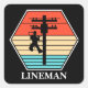 Beautiful gift idea for every lineman showing a vintage sunset retro design showing a working lineman.